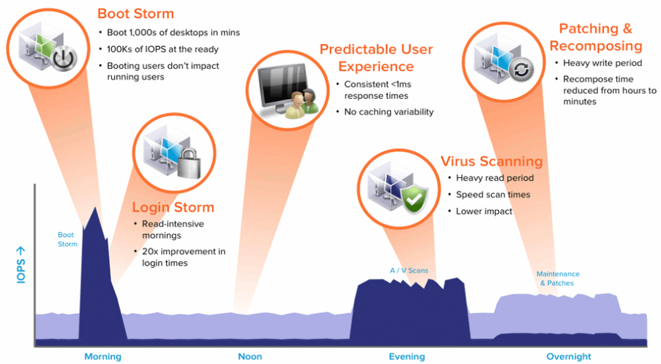 VDI 구축 시, 가장 먼저 Boot Storm 으로 인한 성능 이슈를 해결해야 합니다.